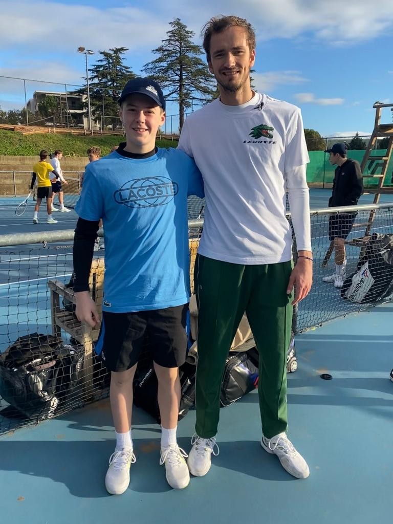 Trainiert wurden die Nachwuchsspieler dort von Sébastien Grosjean. Eric konnte sogar sein großes Idol, Daniil Medwedew, ganz persönlich treffen.