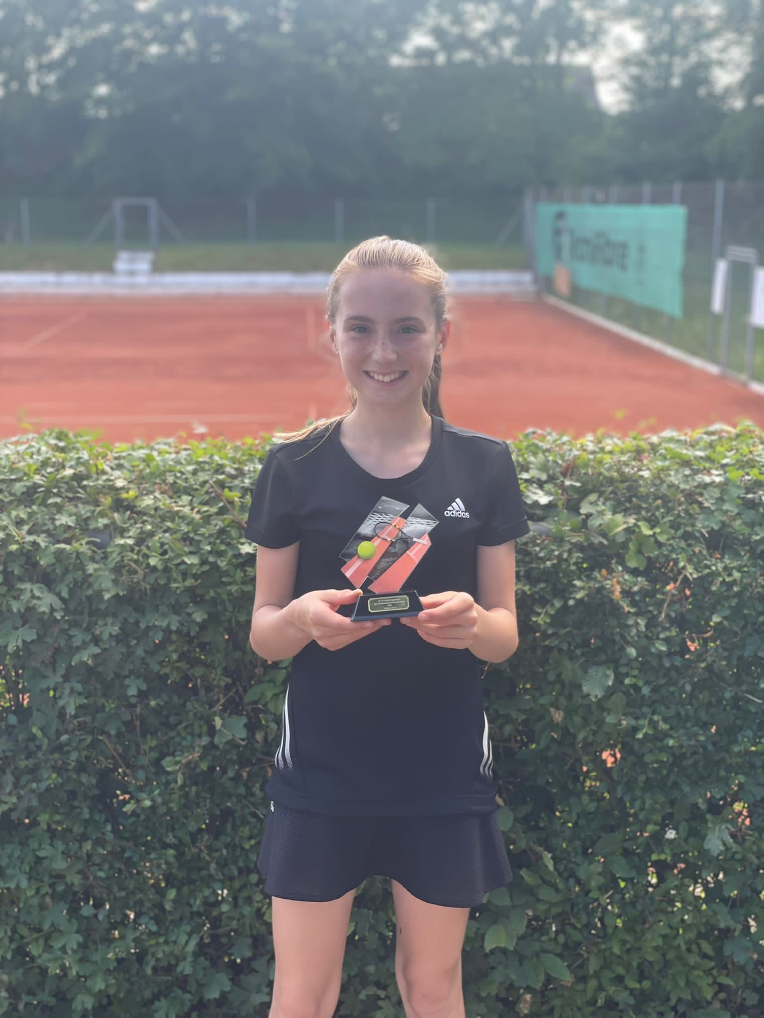 Noemi Kofler belegt den sensationellen 3. Platz beim 14. SV Lohhof Jugendcup der Raiffeisenbank München-Nord vom 09.06. bis 12.06.2022 in der Altersklasse U12. Bei dem J-3 Turnier gelang ihr der Einzug ins Halbfinale, nach einer sensationellen Aufholjagd. Trotz Satzrückstand und einem Spielstand von 2:5 im zweiten Satz drehte sie das Spiel und gewann mit 3:6 7:5 10:6 gegen Sarah Wünsch. Im Halbfinale musste sie sich dann leider gegen die auf 1-Gesetzte und spätere Turniersiegerin Rola Melanie geschlagen geben, erspielte aber den hervorragenden 3. Platz.